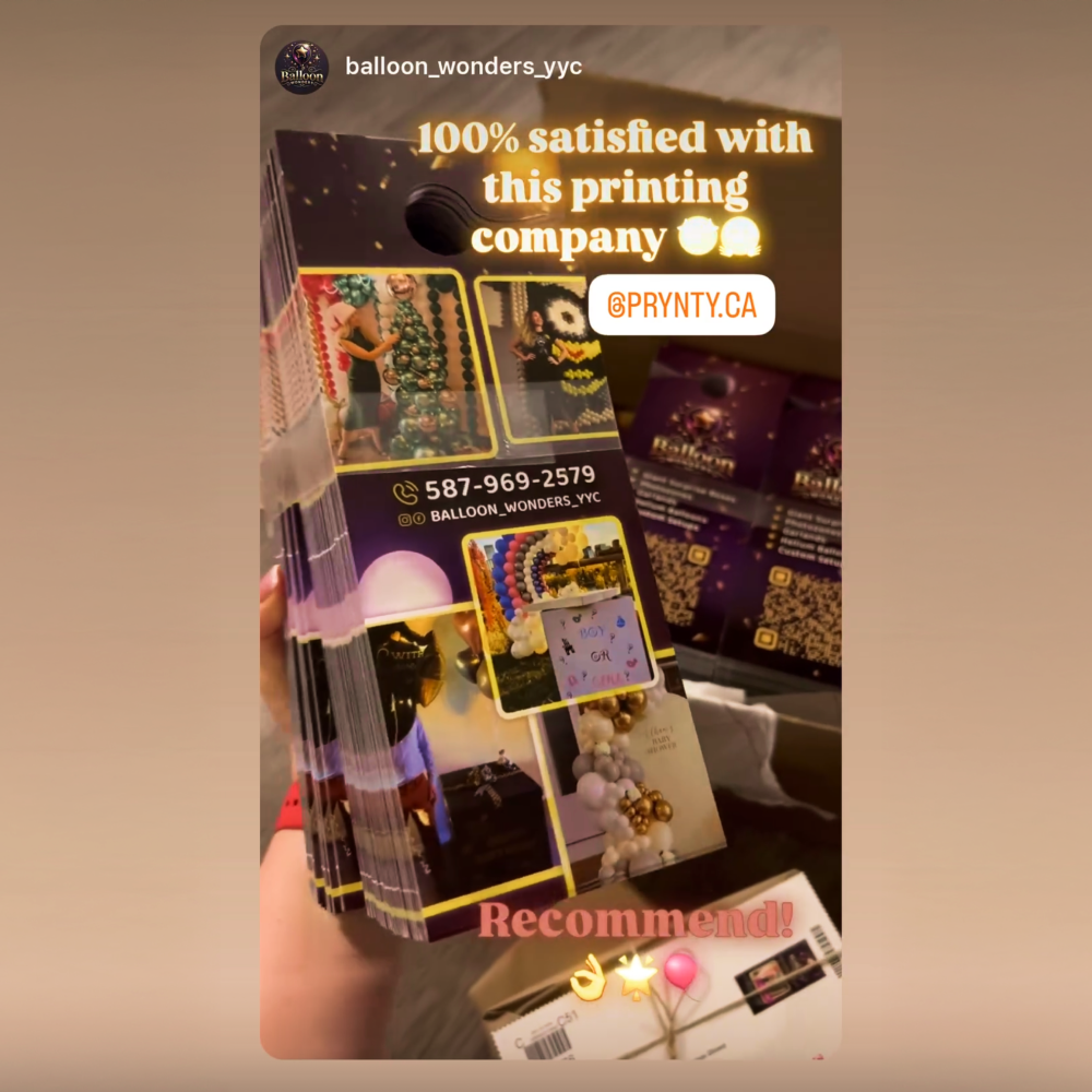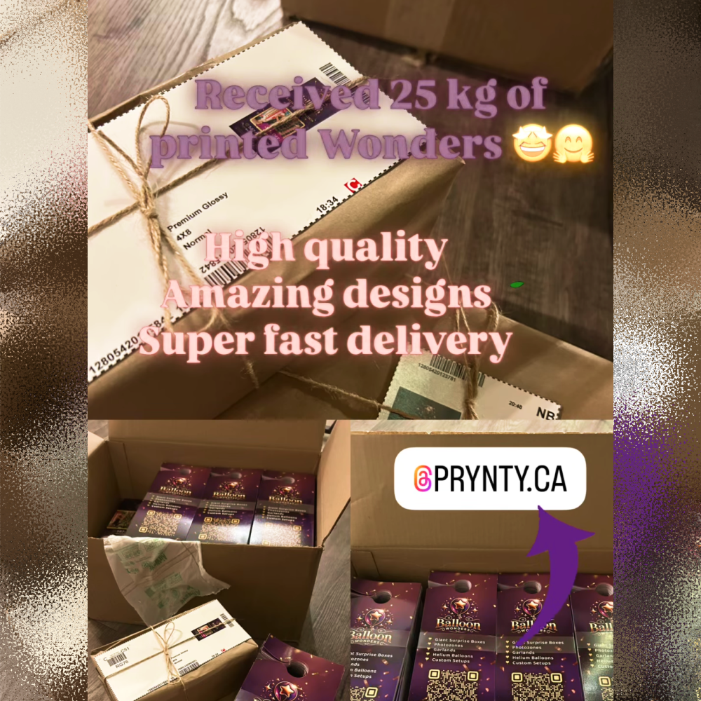 As a loyal and regular customer for Balloon Wonders YYC, I can confidently say that PRYNTY is simply the best in the business. My recent order included a large volume of business cards and promotional posters (around 25 kg!), and once again, they delivered above and beyond.The print quality is consistently high, ensuring our designs look vibrant and professional. What truly sets them apart is their incredible efficiency and 'supersonic' delivery speed – even for large orders. I am always 100% satisfied with every aspect of their service, from initial communication to the final product.